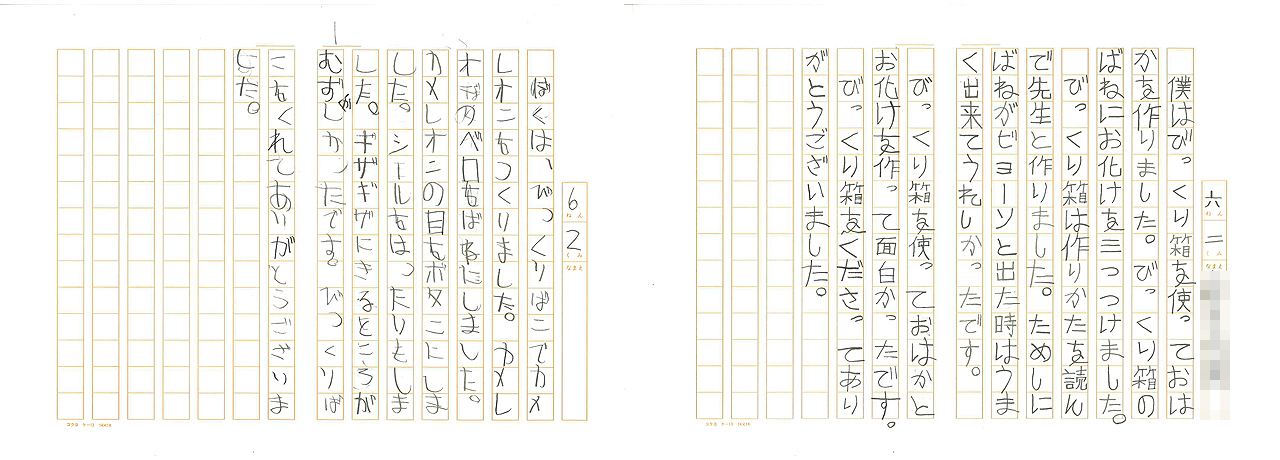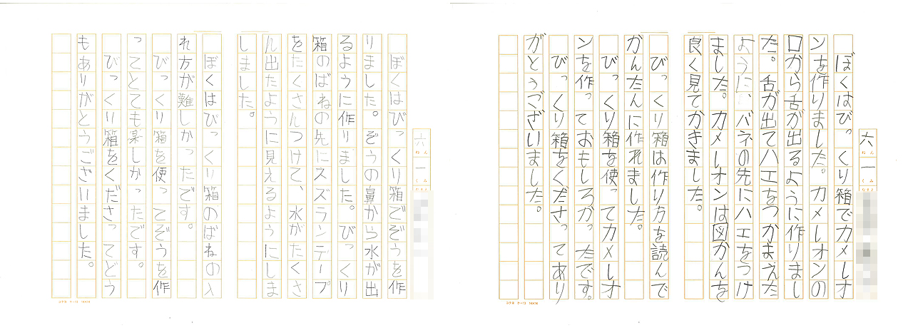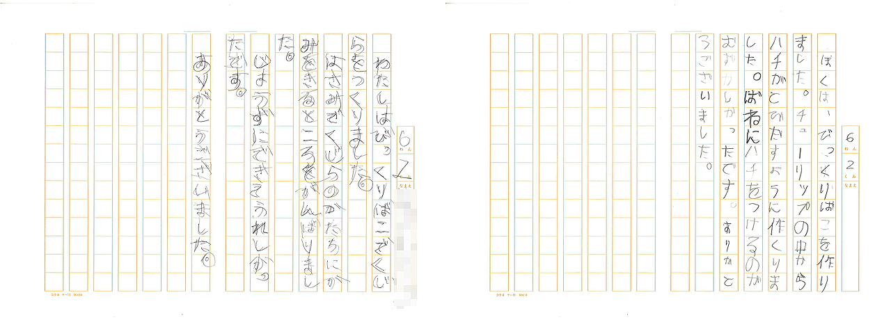 福島県立養護学校に、私たちのスプリングを利用したビックリ箱組立セットをプレゼントしました。 校長先生やご担当の方からのご丁寧なお礼状に添えられていた、子供たちの手紙をご披露します。