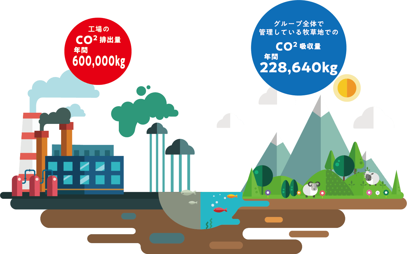 自社牧場におけるCO₂吸収の取り組みがはじまっています。